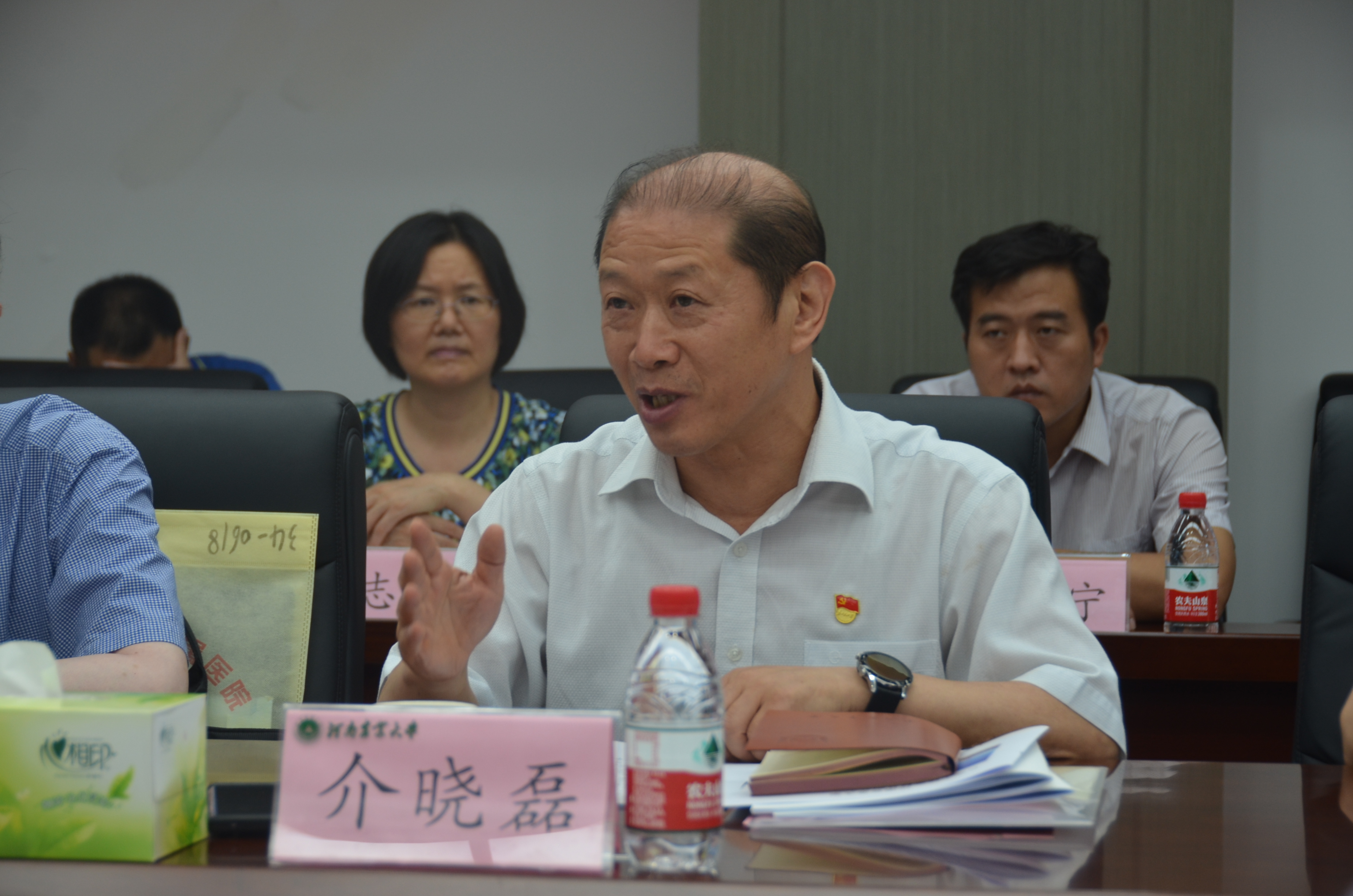 院长胡建军汇报了河南省特色骨干A类学科农业工程建设规划实施情况,重点介绍了学科发展历程、学科建设成效、学科建设亮点、学科规划方案、学科发展存在不足及改进措施等情况。