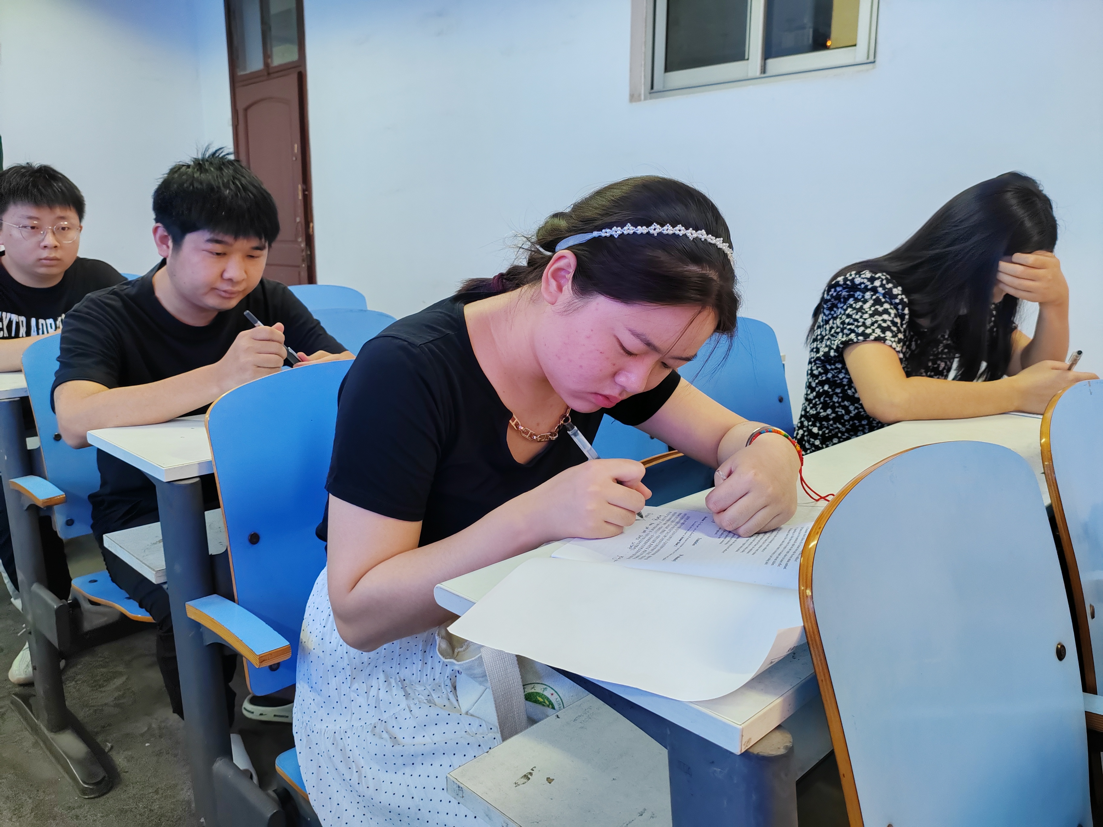 在响铃收卷后,研究生会负责人对试卷进行批改,将成绩与试卷反馈给每一位考生,供同学们进行查漏补缺,同学们对于重点题难题进行交流讨论,进一步提升了自己四六级英语考试应试能力。