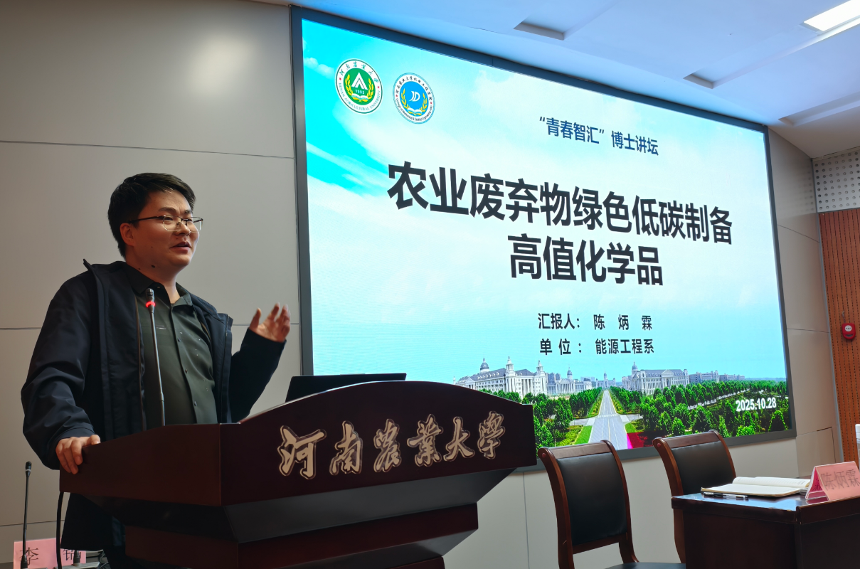 陈炳霖以“农业废弃物绿色低碳制备高值化学品”为题向与会同学们作报告,他结合自身科研方向和项目经验,分享了自己的科研历程和心得体会,深入浅出地讲解了科研思维方法与学术创新路径,展现了青年教师在科研攻关与教学创新方面的积极探索与实践。讲坛现场互动频繁,气氛热烈,参会研究生纷纷就学术热点与科研问题展开提问交流。