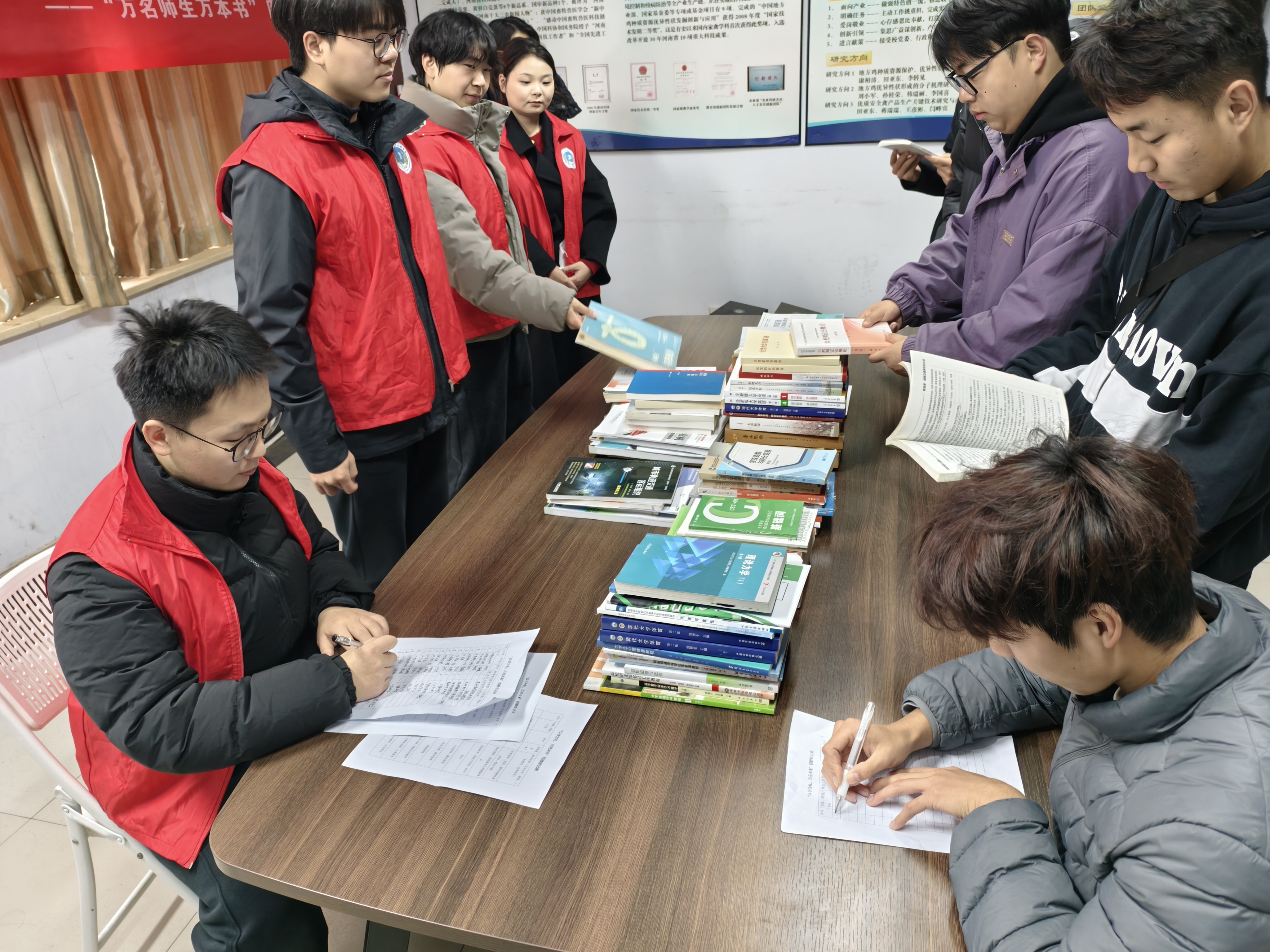 为响应我校“万名师生万本书”图书捐赠月活动,推进我校馆院资源共建发展,12月23日,学院在文化路校区举办“书香传递,爱心同行”捐书活动。团委老师和毕业生代表参加活动。
