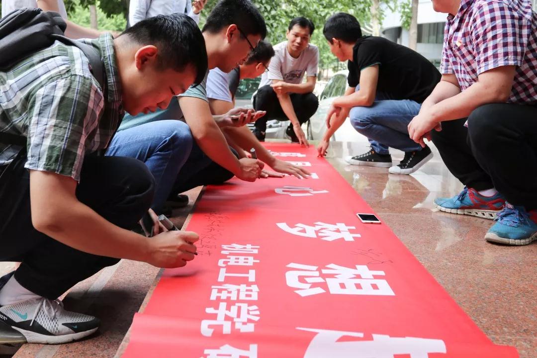 参观结束后,同学们来到机电学院楼前,在“感恩于心,梦想起航”的横幅上写下了赠言并署名,表达对母校的不舍与祝福。