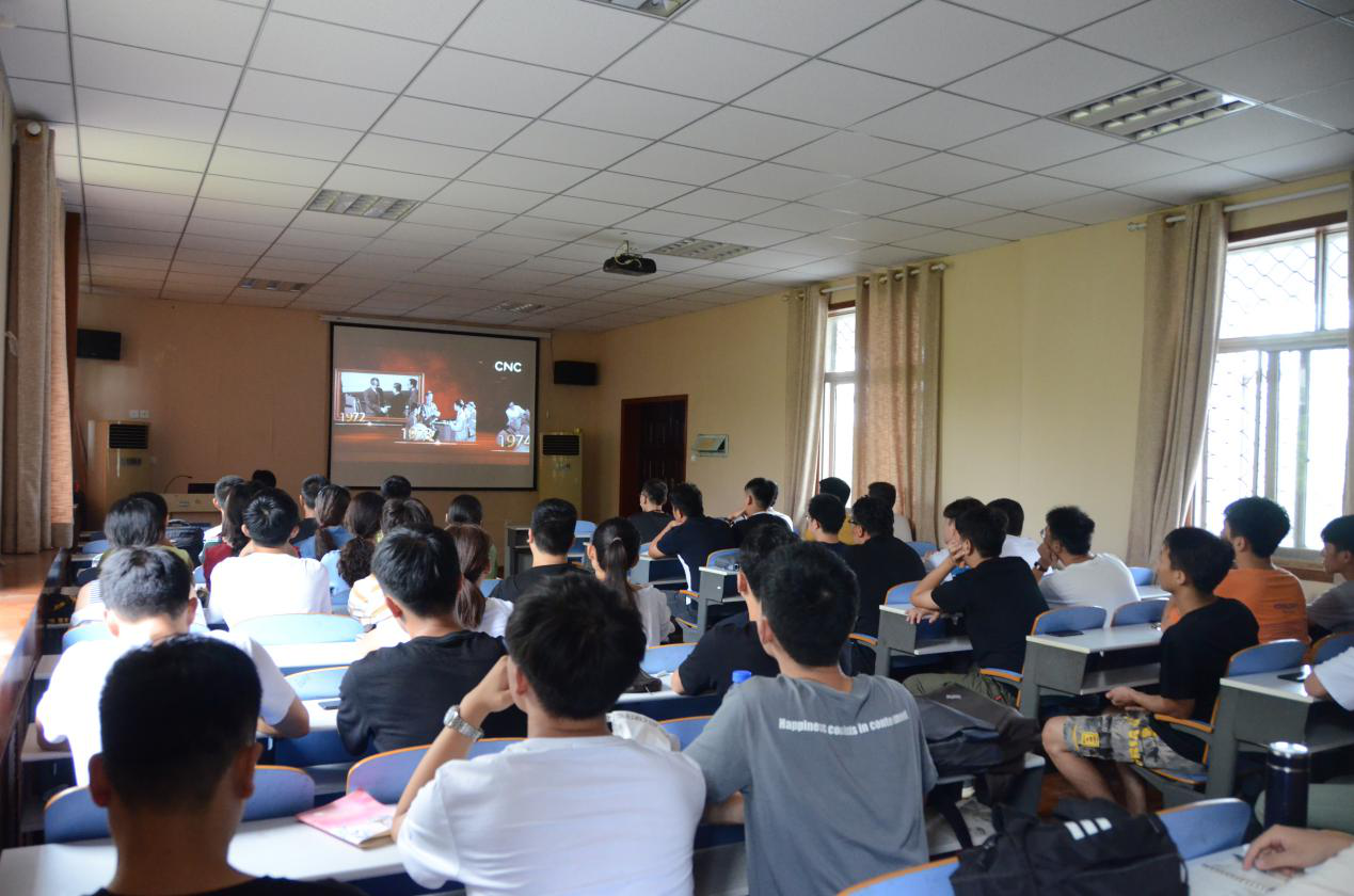 与会人员一起观看了建国70周年献礼片“70年披荆斩棘,70年风雨兼程”。影片中,伴随着毛主席洪亮的声音向全世界庄严宣告:“中华人民共和国、中央人民政府今天成立了”。1949年10月1日,成为一个被所有中国人永远铭记的日子。这一天,获得新生的中华人民共和国结束了一百多年来被侵略、被奴役的屈辱历史,真正成为独立自主的国家,以胜利者的豪迈开辟了中国历史新纪元。1953年第一辆解放牌汽车下线、1964年第一颗氢弹实验成功、1970年“东方红一号”人造地球卫星上天、1975年火箭卫星发射成功、1987年联合国向袁隆平颁发科学奖、1992年邓小平发表了南巡讲话、2002年玉米育种取得重大突破、2008年神舟七号载人飞船发射成功……,一个个激动人心的历史时刻、一件件中华腾飞的历史事件呈现在眼前,中华民族自强不息的伟大精神和阔步向前的豪迈气概跃然屏幕,与会研究生无不受到感染,心中升腾起投身国家建设的无限豪情。