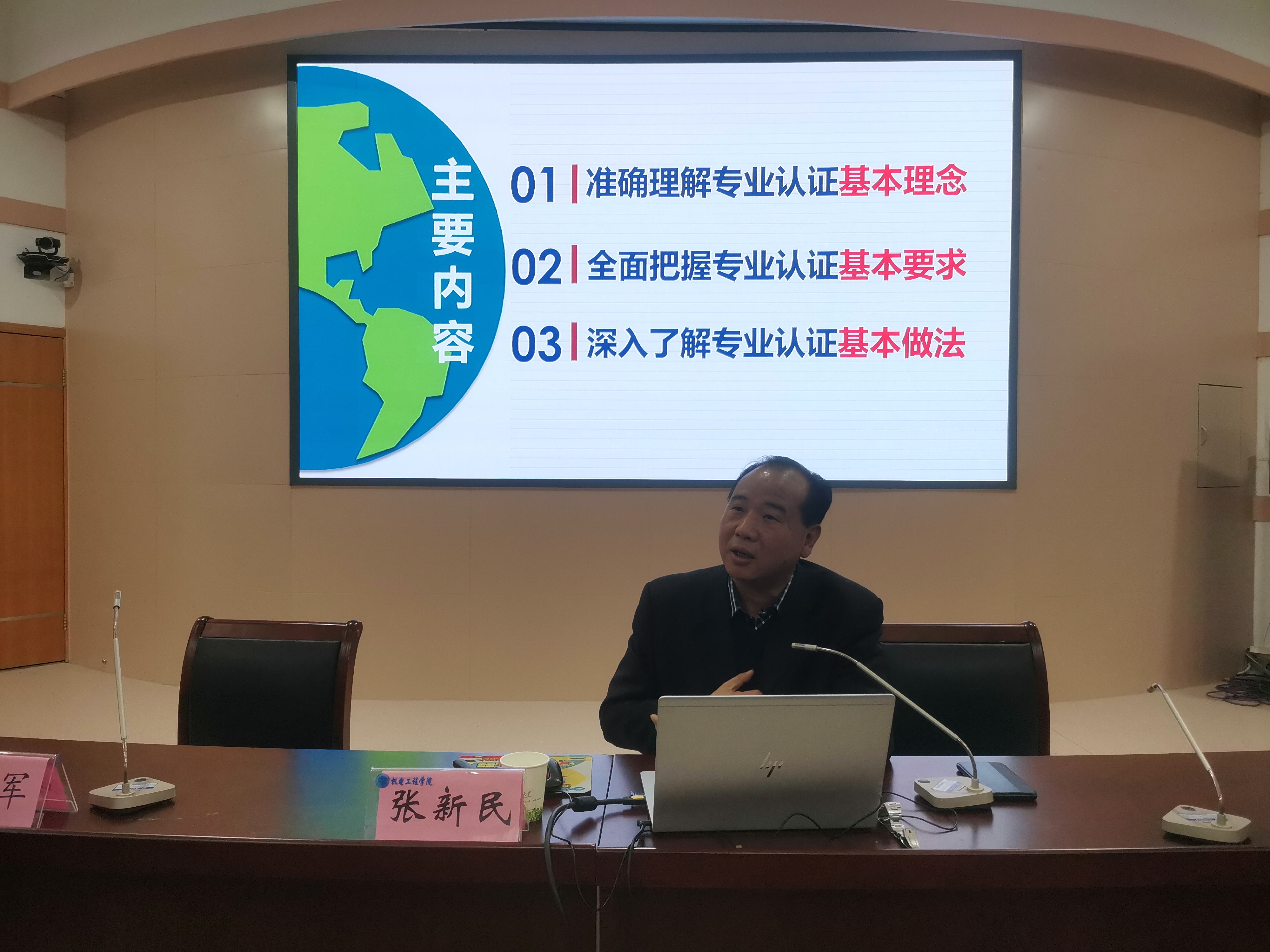 报告会上,张新民以“基于认证标准 关注重点问题”为题,从准确理解专业认证基本理念、全面把握专业认证基本要求、深入了解专业认证基本做法三个方面详细阐释了审核评估的背景、理念、基本流程、指标体系和核心要点,重点讲解了专业认证的内涵、开展情况、价值体现、基本框架和关键要素,还就审核评估、专业认证工作中遇到的问题和困惑进行了深入浅出的的讲解。