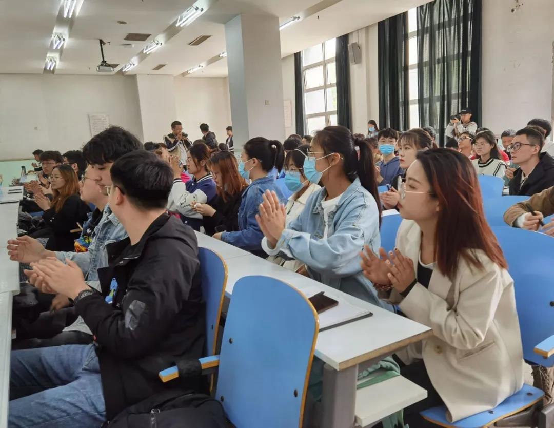 毕业生今年在考研就业等方面取得的优异成绩,并就三方协议、报到证、档案与户口等就业问题进行讲解,对毕业生就业可能遇到的问题作出详细分析。此外,黄笑围绕大学生日常生活安全问题、挑战杯和“互联网+”等各类竞赛以及招聘会开展等方面工作做出下一步安排,鼓励学生在学好专业知识的同时提高自己的创新精神,积极参加创新比赛。