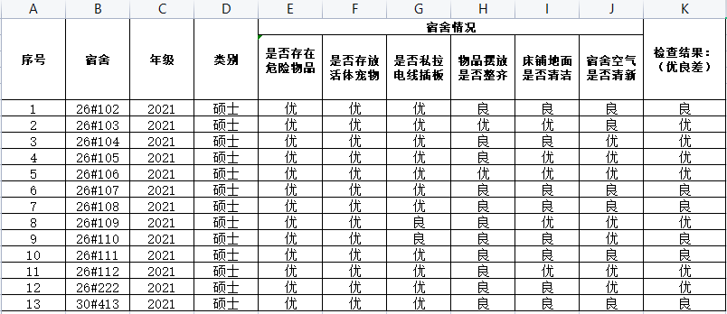12月28日宿舍安全卫生检查结果
