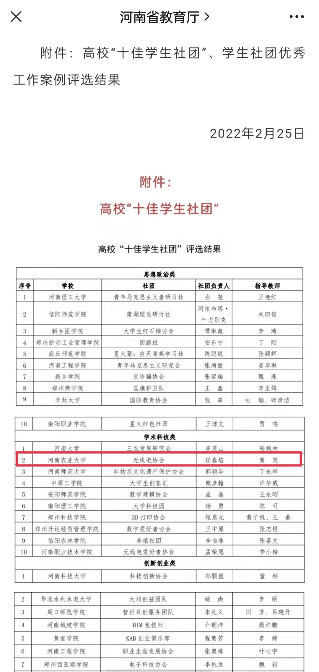 喜报!91社区 无线电协会荣获全省高校“十佳学生社团”荣誉称号