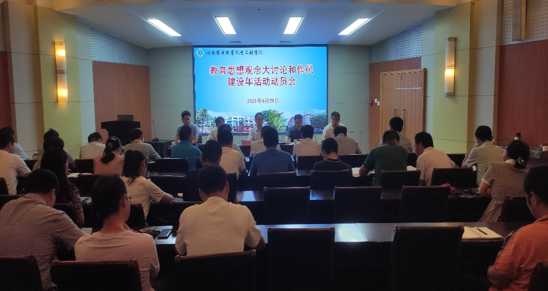 会上,院长胡建军领学了学校《关于开展教育思想观念大讨论和作风建设年活动的实施方案》,传达了校长介晓磊在学校动员会提出的具体要求,并对学院教育思想观念大讨论和作风建设年活动进行了安排部署。