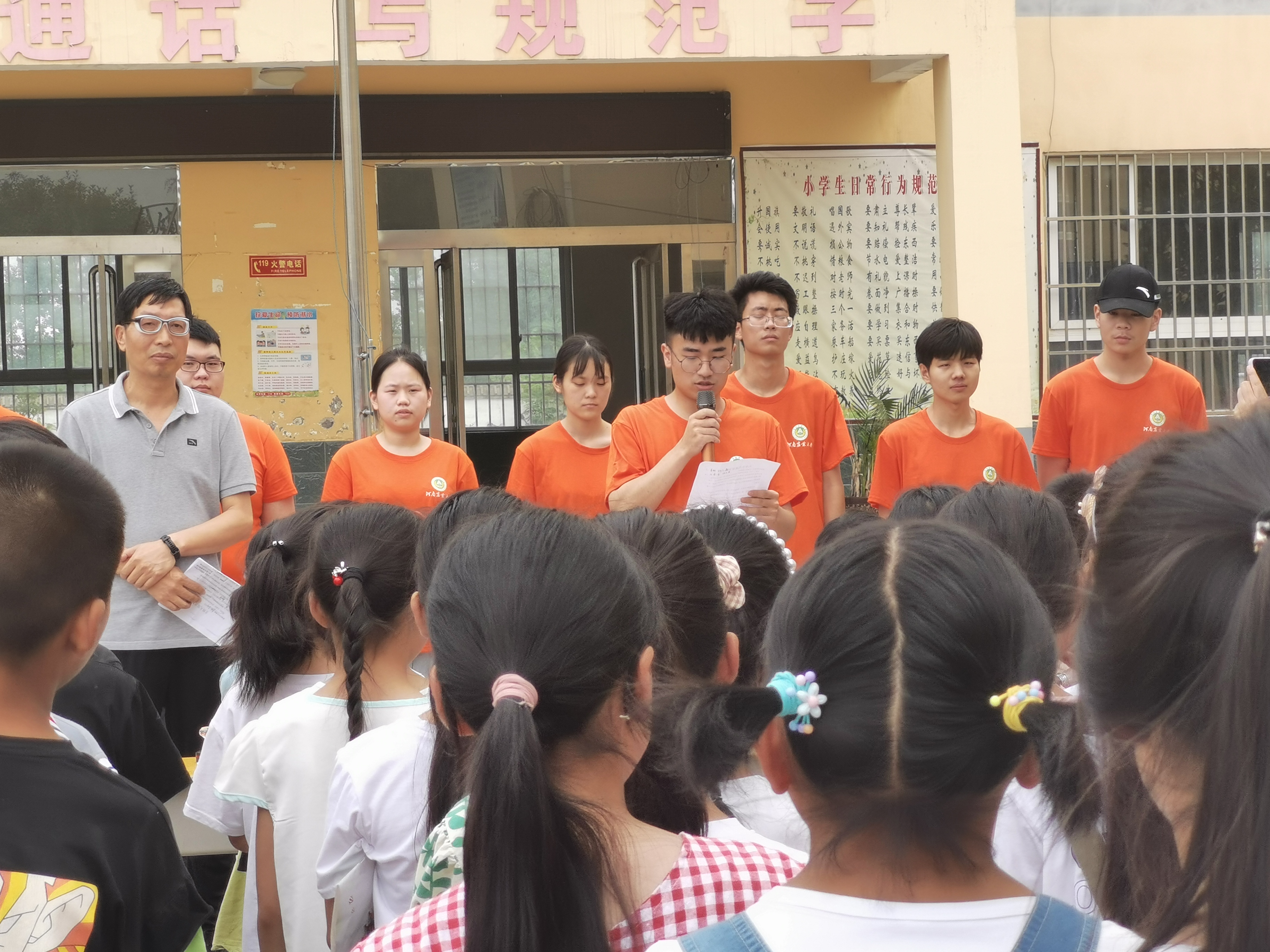 于漯河市舞阳县孟寨镇孙李小学举行暑期支教启动仪式,院辅导员徐佳亮、王晓楠,雷锋站漯河支教团队全体成员以及孙李小学全体师生参加了本次启动仪式。
