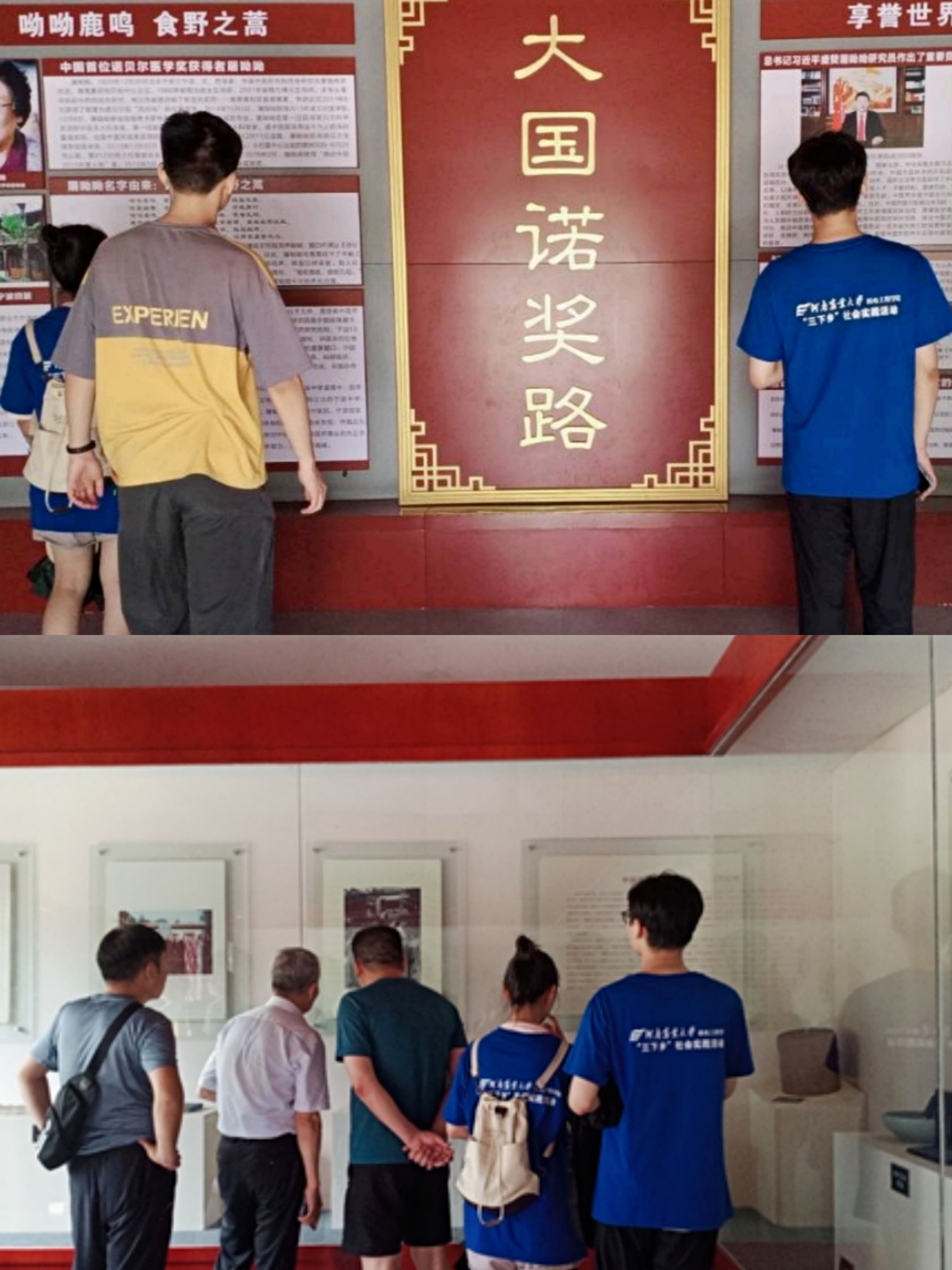 7月5日,在淅淅沥沥的小雨中,实践队员们再次来到医圣祠,参观了后院各厢房。进入其中一个厢房,队员们便被“大国诺奖路”五个烫金大字所吸引,这里记载了屠呦呦凭借研究古籍中治疗疟疾的药方,从而发现了治疗疟疾的神药——青蒿素,并获得诺贝尔生理学或医学奖的事迹。最大的厢房里摆放着张仲景、孙思邈、王致和三位医学家的雕塑,望着庄严的雕塑,实践队员们心中的敬仰之情油然而生。通过几天的参观学习,实践队员们不仅深入了解了医圣祠丰厚的医学文化内涵,更接受了一场传统文化教育的洗礼。