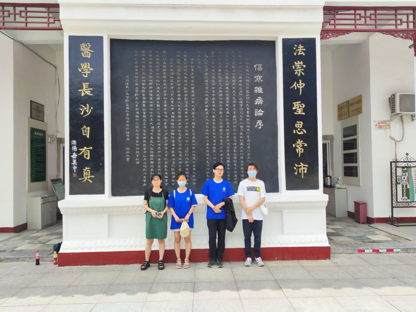7月3日,在当地居民的指引下,实践队员们顺利抵达南阳市城东温凉河畔。走进医圣祠,首先映入眼帘的是一块巨大的照壁,上面雕刻着由我国名医黄竹斋先生撰写的《医圣张仲景传》,通过对照壁的浏览,实践队员们对医圣张仲景的生平事迹有了更进一步的了解,深刻感受到他对我国中医药事业所做出的伟大贡献。