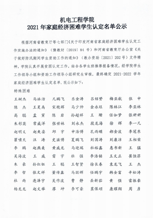 202号)文件精神,学院认真开展贫困认定工作,结合各学生班推荐报备情况,经学院学生工作领导小组和资助工作领导小组研究生审核,最终确定2021-2022学年家庭经济困难学生认定名单,现公示如下: