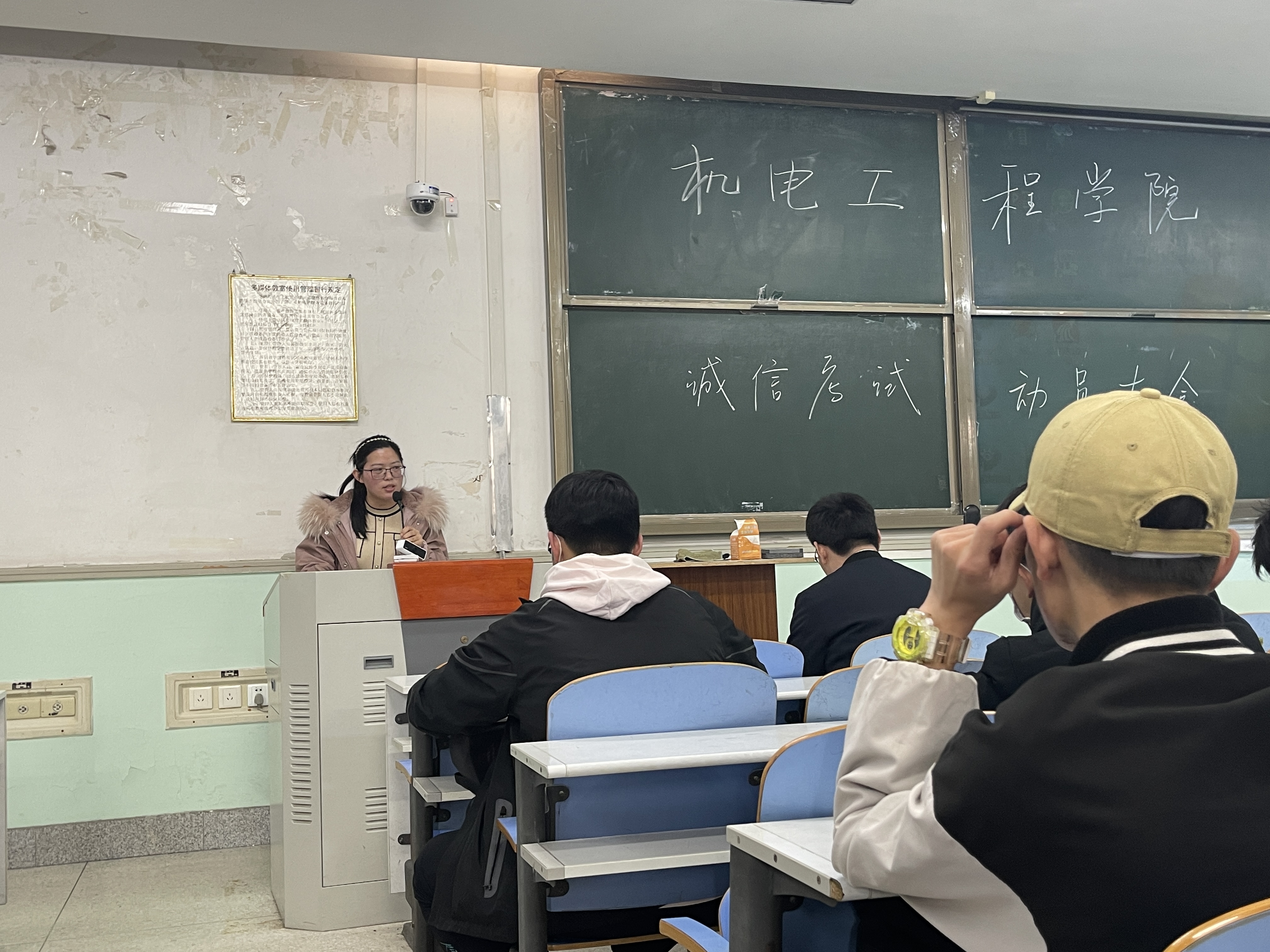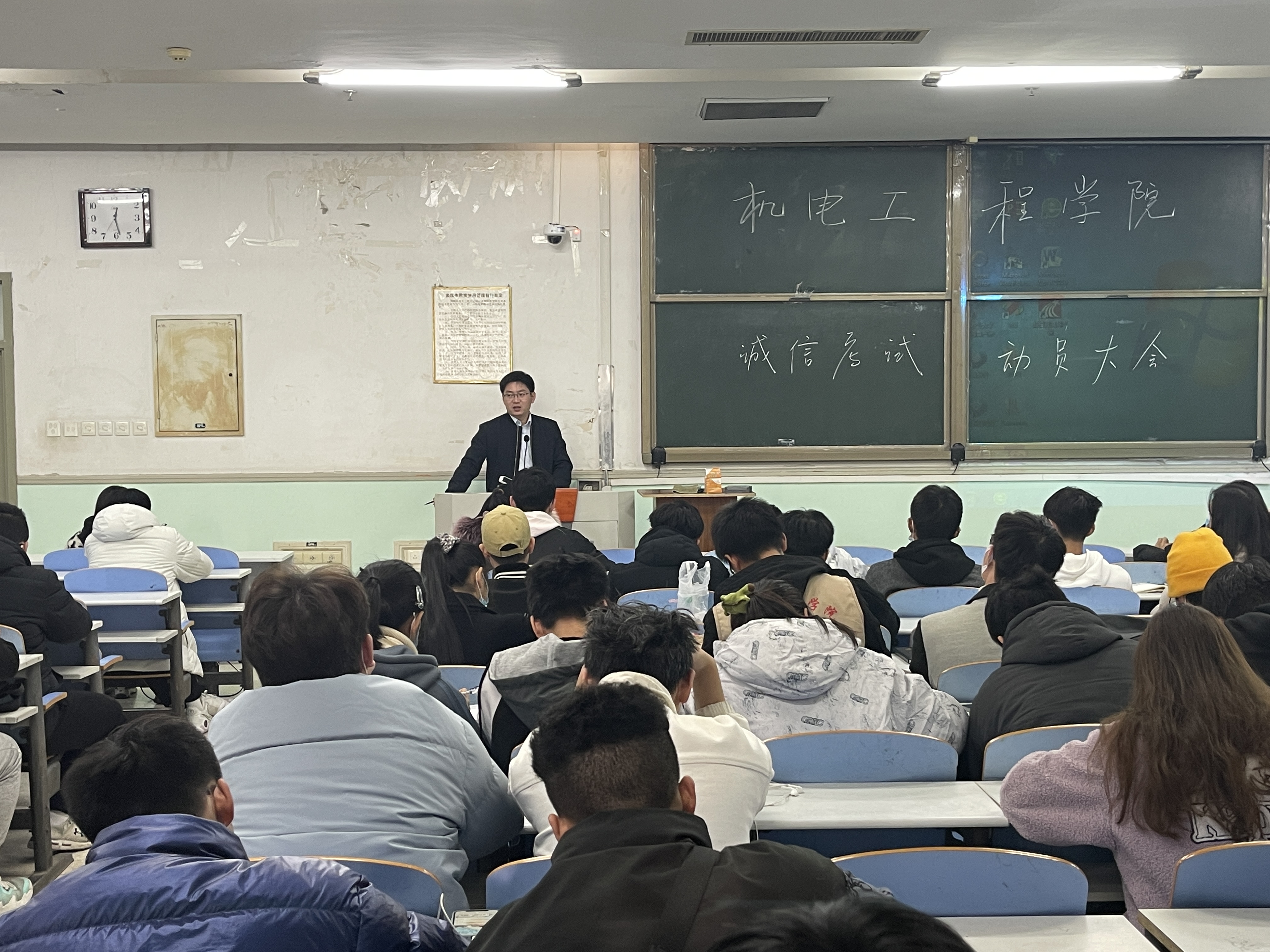 诚信考试动员大会,院团委书记黄笑,团委副书记徐捧丽出席本次会议,各年级班长支书及学生组织主要成员参加会议。