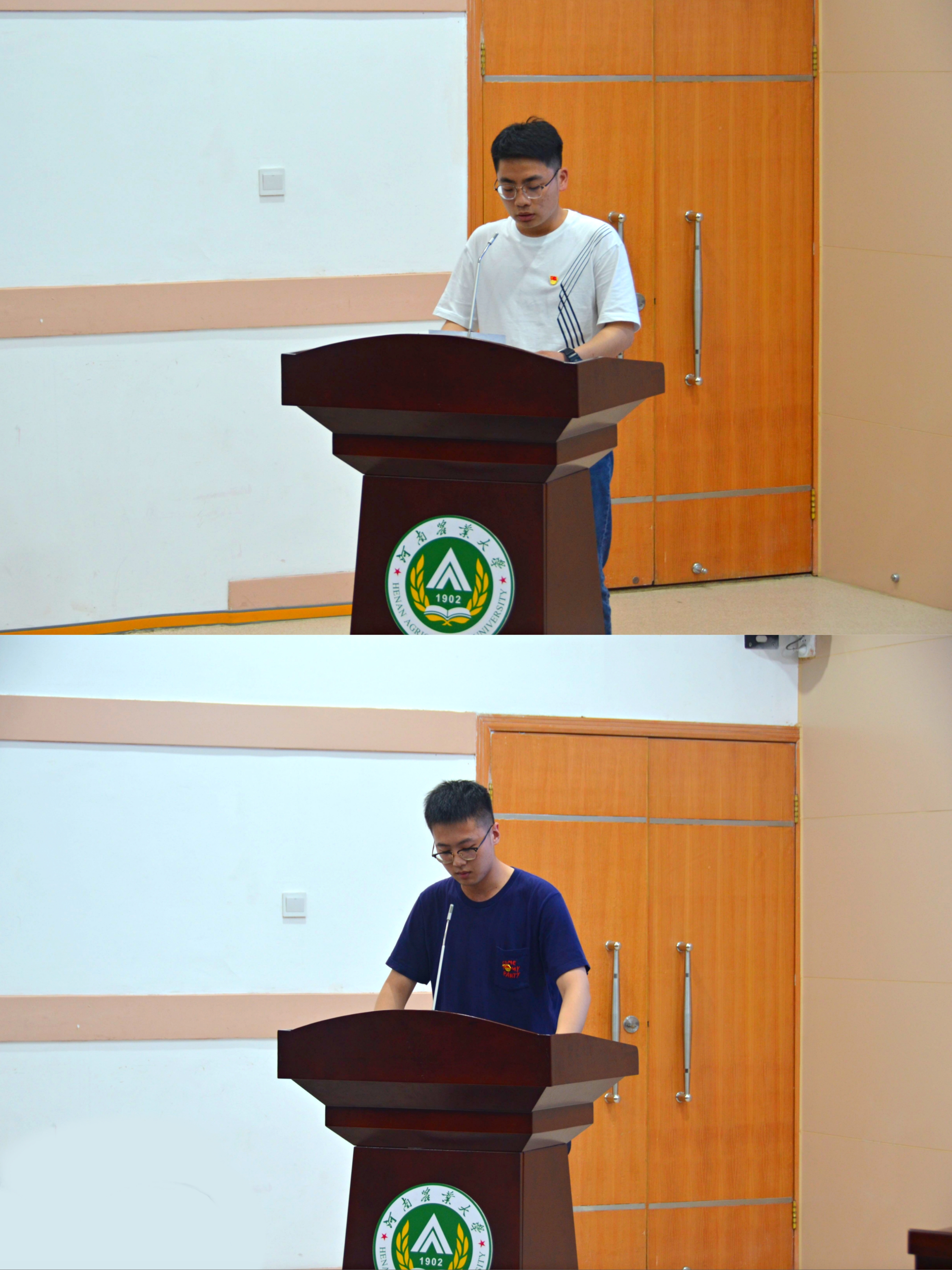 第三期青马班优秀成员杜秉灿代表发言,通过讲述在青马工程的理论和实践学习,号召青马人要胸怀理想、坚定信念、加强理论素养,在以后工作中讲政治,讲原则,讲大局,做有思想有责任的新青年。第四期青马班成员学生代表王毅轩表示,在今后的学习生活中,会更加努力学习专业知识,并以身作则,发挥学生干部作用,努力成长为一名“有理想、善学习、讲道德、要自立、勇奋斗”的青年马克思主义者,用青春激荡时代,用才智成就理想。