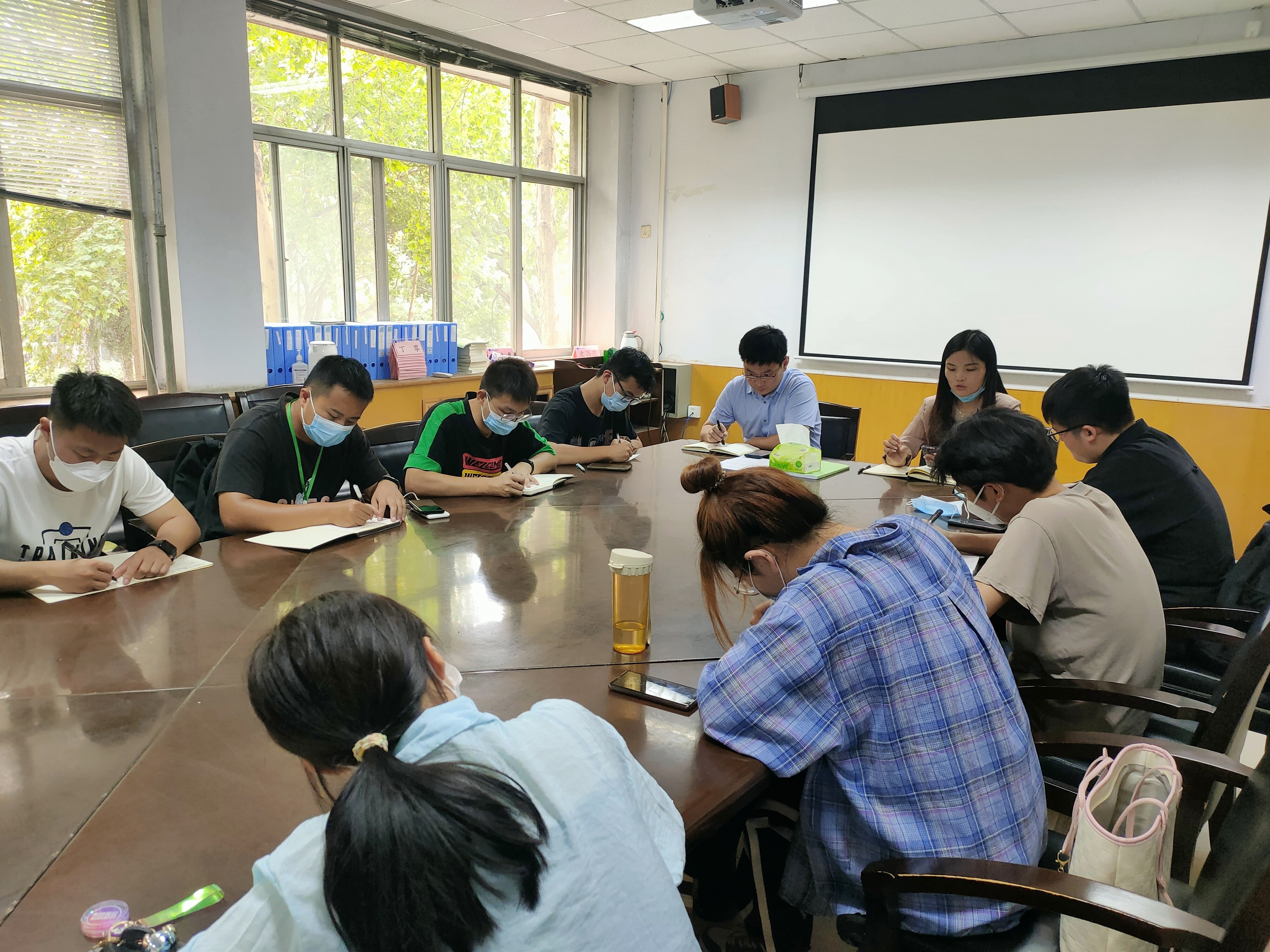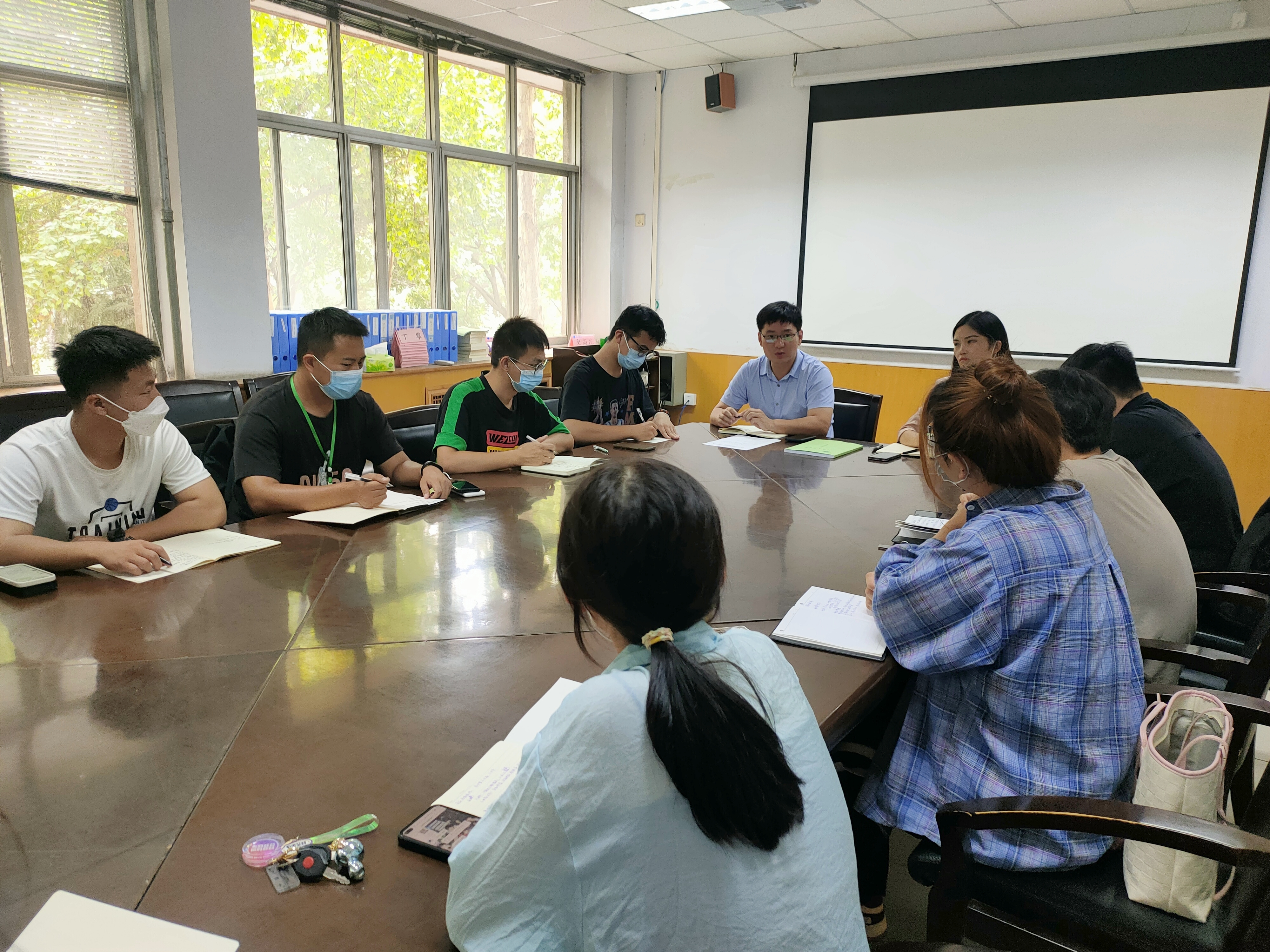 疫情防控工作与学院新生重点工作进行安排部署。要求各助班尽快向班级同学传达好学院近期疫情防控工作安排,引导学生积极配合疫情防控管理规定,每日按时完成健康上报、核酸检测;严格落实国庆假期新生请假制度,协助专业辅导员做好新生请假事宜筛查、信息登记等工作;加强与新生之间的沟通交流,密切关注其心理健康与思想动态,及时回应并解决新生所遇到的困难;做好舆情检测管控,引导新生从正规渠道反映问题,增强理性认识。
