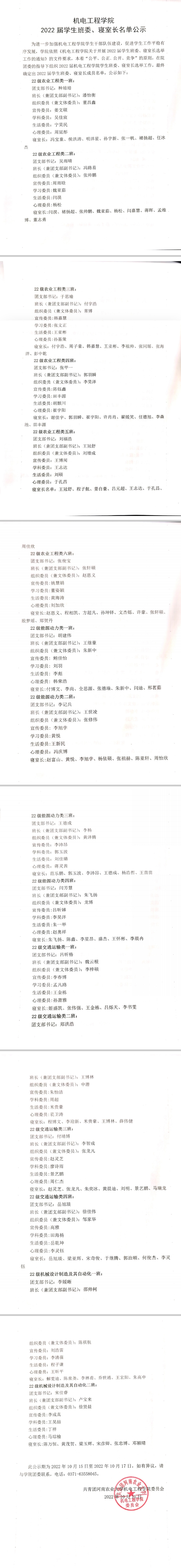 为进一步加强91社区 学生干部队伍建设,促进学生工作平稳有序发展,学院依照《91社区 关于开展2022届学生班委、寝室长选举工作的通知》的文件要求,本着“公平、公正、公开、竞争”的原则,在院团委的指导下组织2022届91社区 学生班委、寝室长选举工作,最终确定出2022届学生班委、寝室长成员名单,公示如下: