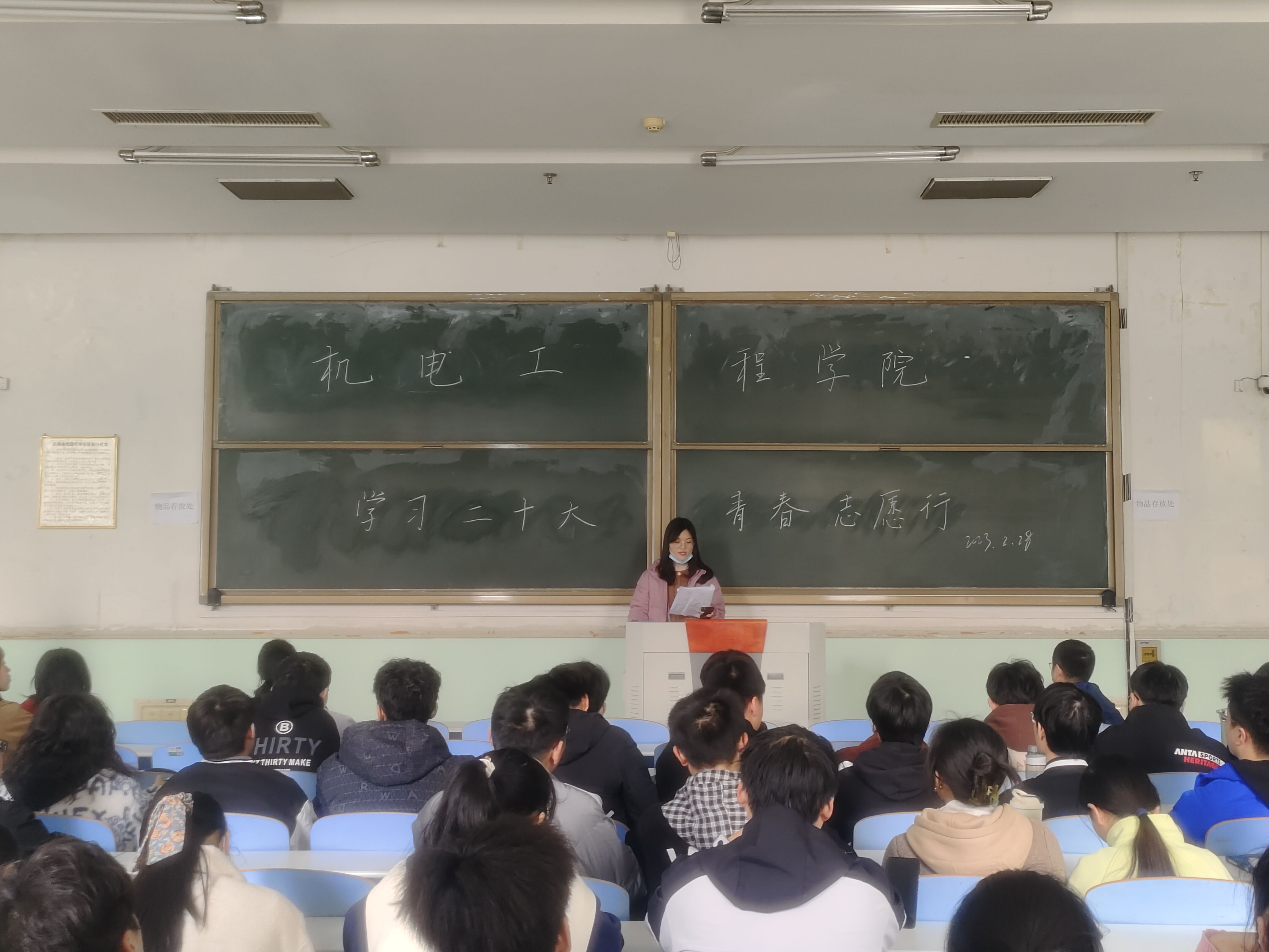 于文化路校区工程楼101教室组织开展“学习二十大,青春志愿行”主题团日活动动员大会。院党委副书记宋晶,团委书记黄笑,团委副书记徐捧丽,年级辅导员胡亭亭、王晓楠、孙改革出席本次会议,院学生组织主要成员、各年级班长支书参与本次会议。