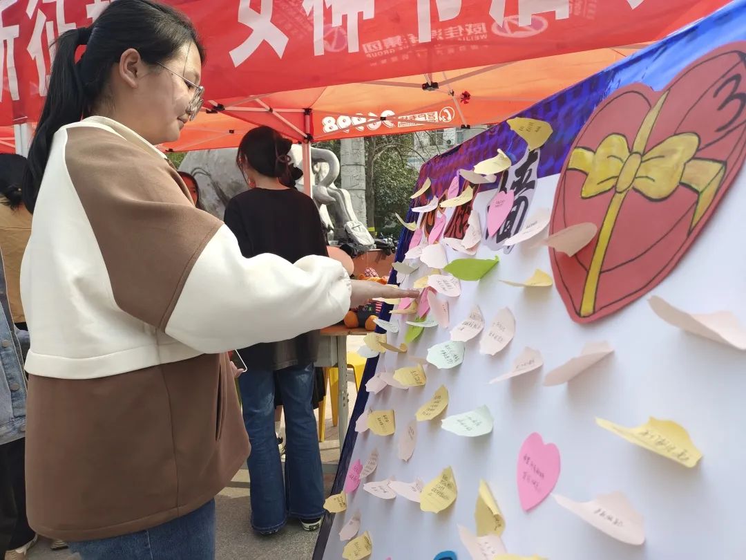 “贯彻学习二十大”、“歌声飞扬齐传唱”、“心系女生心祝愿”、“巾帼映象熠熠辉”……每一个活动主题都以浪漫与温柔为名,其中蕴意与内涵在不经意间缓缓道来。党的号召拨动记忆里的琴弦,学习二十大思想,感召传承精神;聆听歌声旋律,猜得曲调歌名,似忆曾几时少年,多少青葱岁月;活动展板上一条条祝语,是对所有女生真挚且美好的祝愿,如沐春风,沁人心脾;翻开历史的画卷,可知巾帼不让须眉,大义凛然气概非凡,寄语间皆是敬佩与赞美。