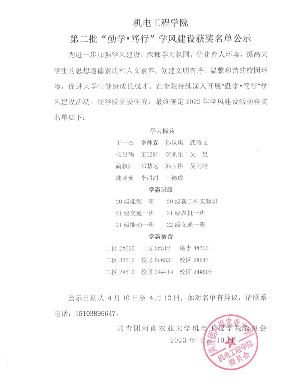 为进一步加强学风建设,浓郁学习氛围,优化育人环境,提高大学生的思想道德素质和人文素养,创建文明有序、温馨和谐的校园环境,促进大学生健康成长成才。在全院持续深入开展“勤学·笃行”学风建设活动。经学院团委研究,最终确定2022年学风建设活动获奖名单如下: