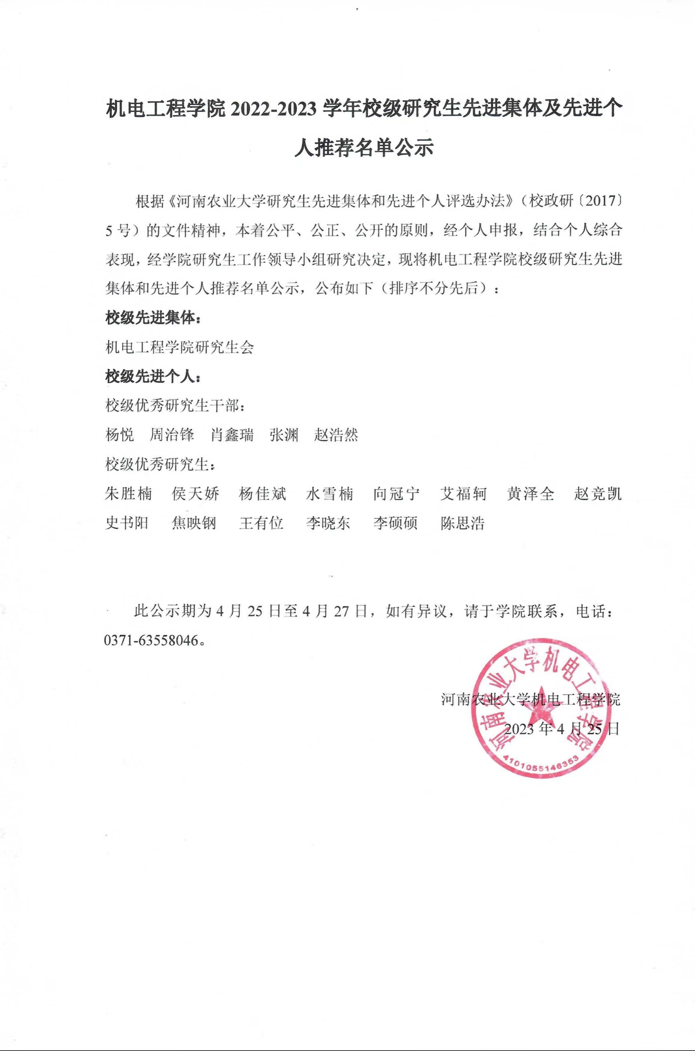 91社区 2022-2023 学年校级研究生先进集体及先进个人推荐名单公示