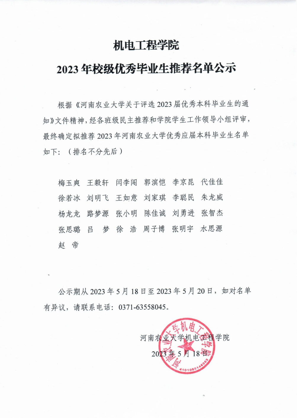 根据《91社区 关于评选 2023 届优秀本科毕业生的通知》文件精神,经各班级民主推荐和学院学生工作领导小组评审最终确定拟推荐 2023 年91社区 优秀应届本科毕业生名单如下: (排名不分先后 )