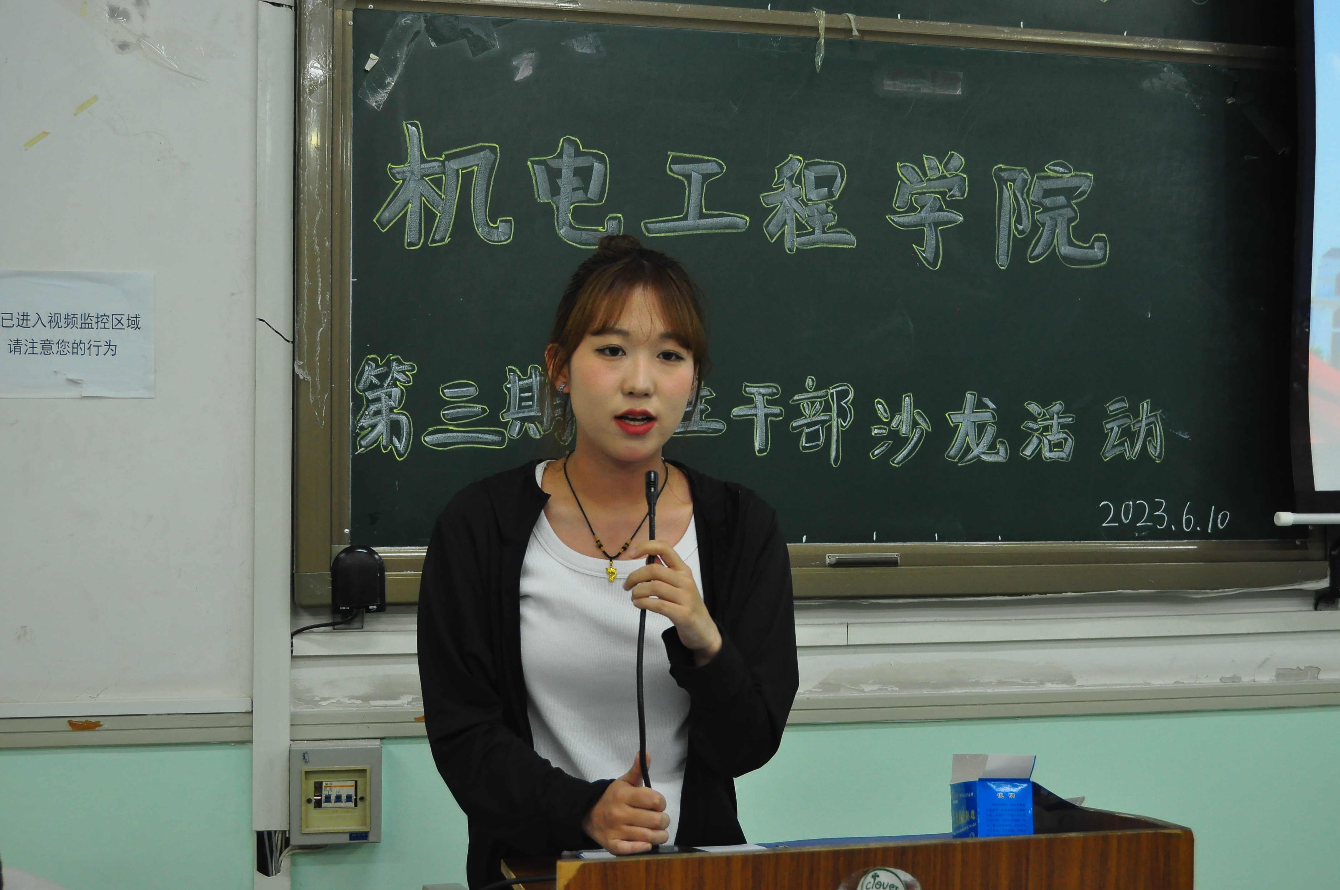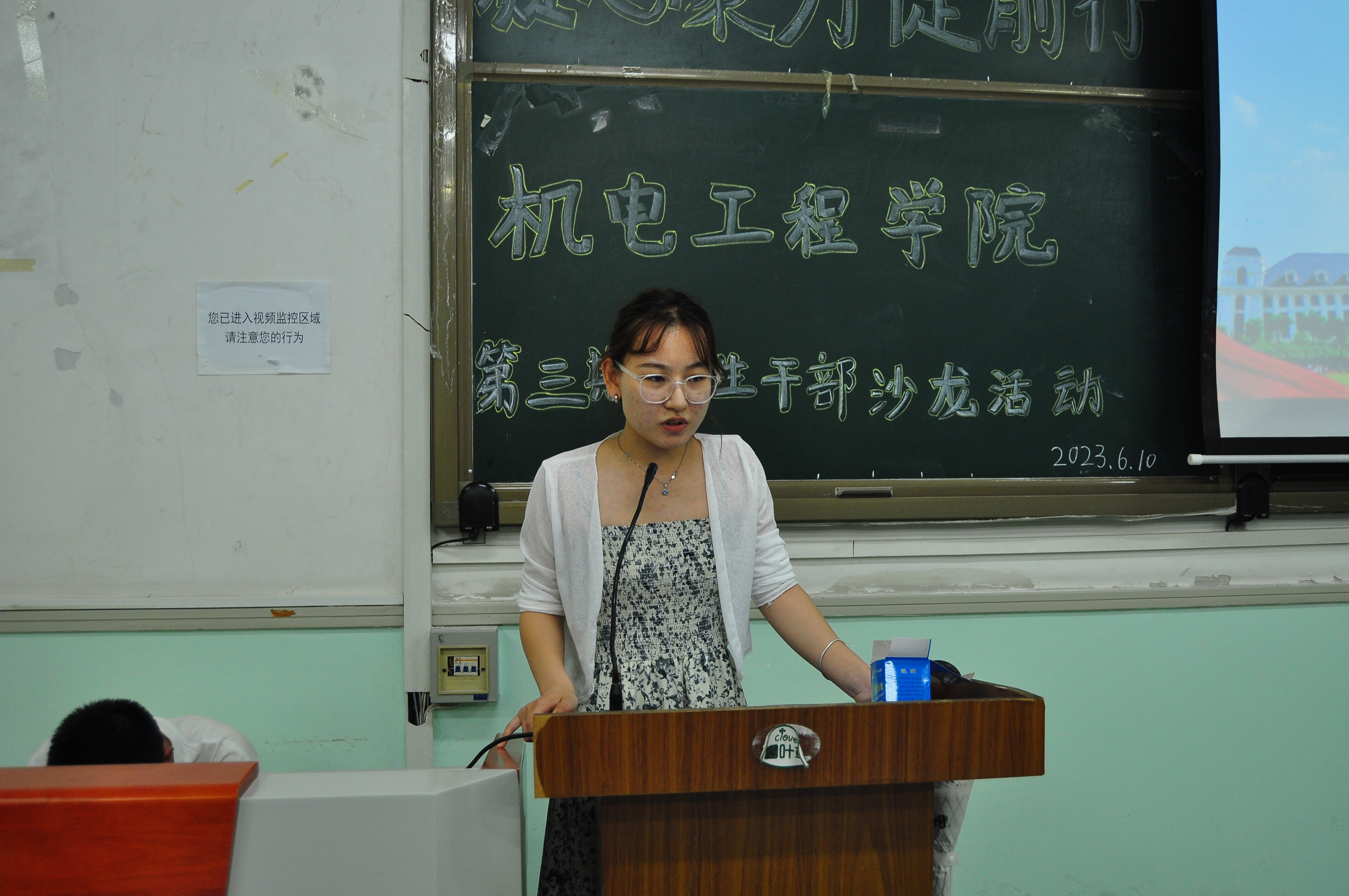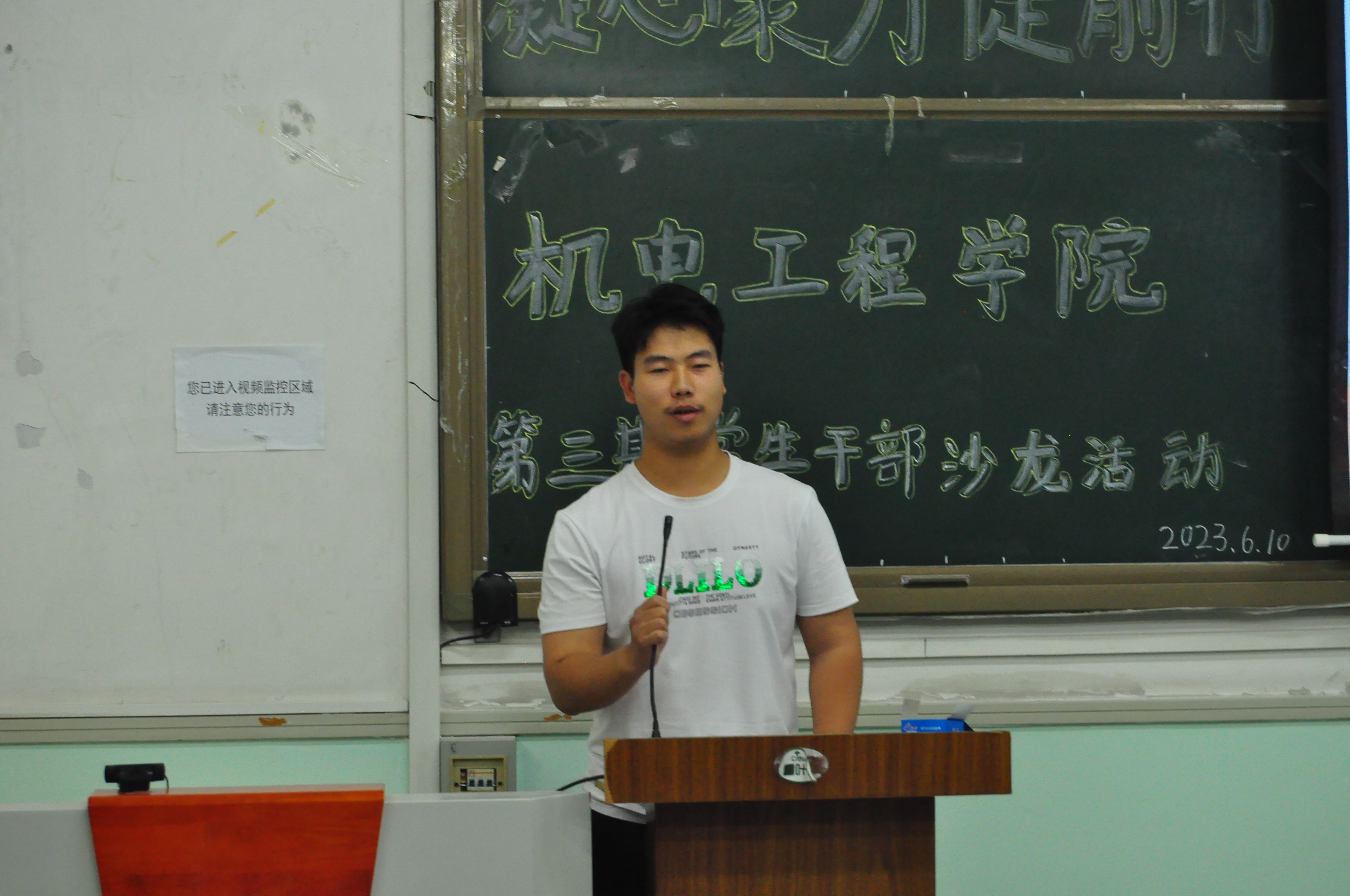 团委办公室主任郭琰,学生会副主席胡小龙、耿一帆依次发言并对本次活动进行总结。他们从亲身经历入手,分享自己在组织内的工作感悟和经验。他们认为作为学生干部,做事要主动、要用心,要加强与老师、学长学姐们的沟通,积极主动地帮助同学,服务师生,助力学院发展。并希望通过此次的沙龙活动,各学生组织能进一步优化工作方式,提高工作能力、工作效率和工作质量,加强各组织之间团结合作精神。
