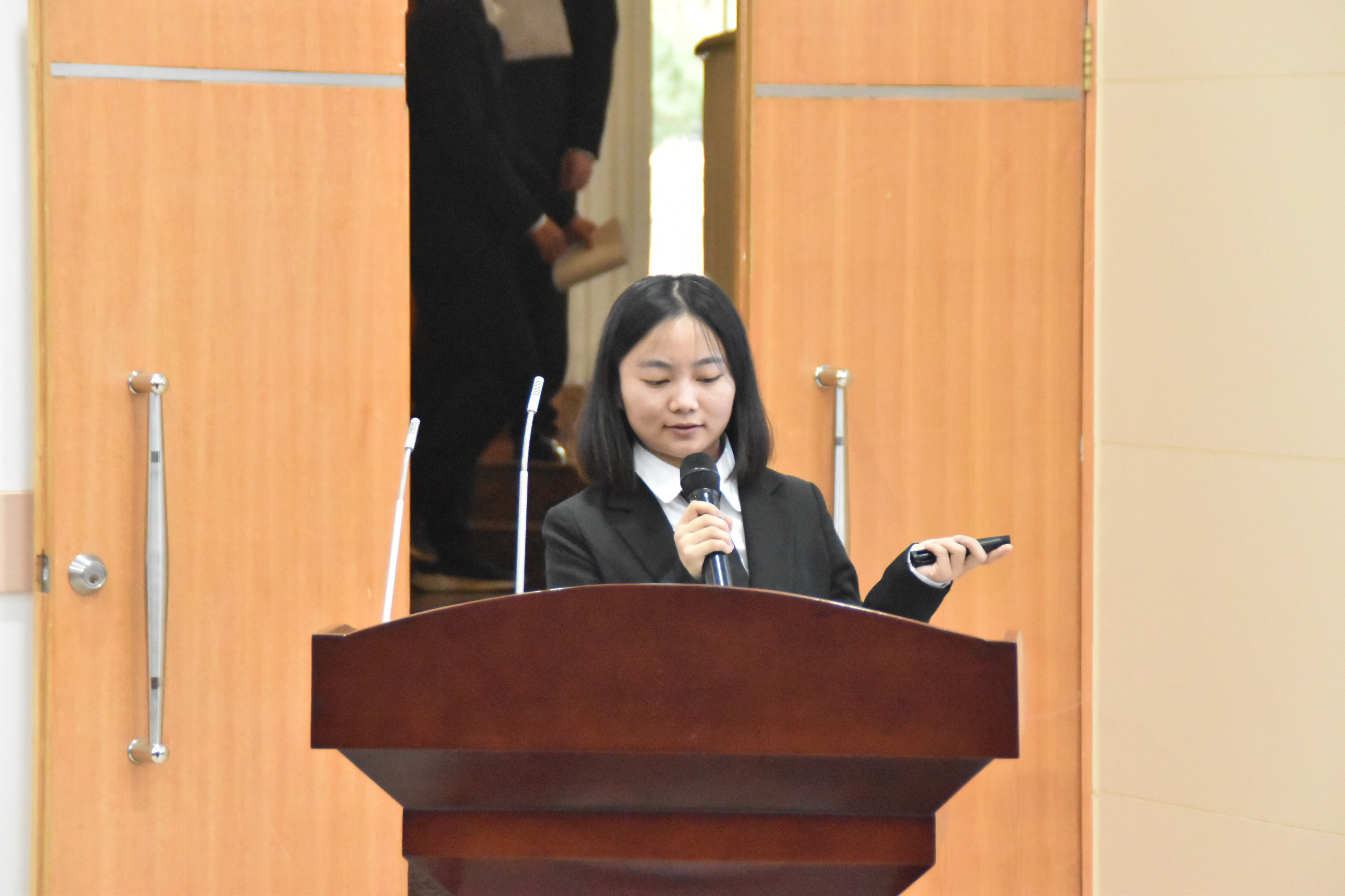 各21级竞选人依次上台发言,他们精神饱满、自信洋溢地向大家展示自己的学习生活、工作经历以及对未来工作的设想。现场抽题答辩环节,每个竞选人都从容不迫、冷静应对,给在场的22级学生干部树立了优秀的典范。