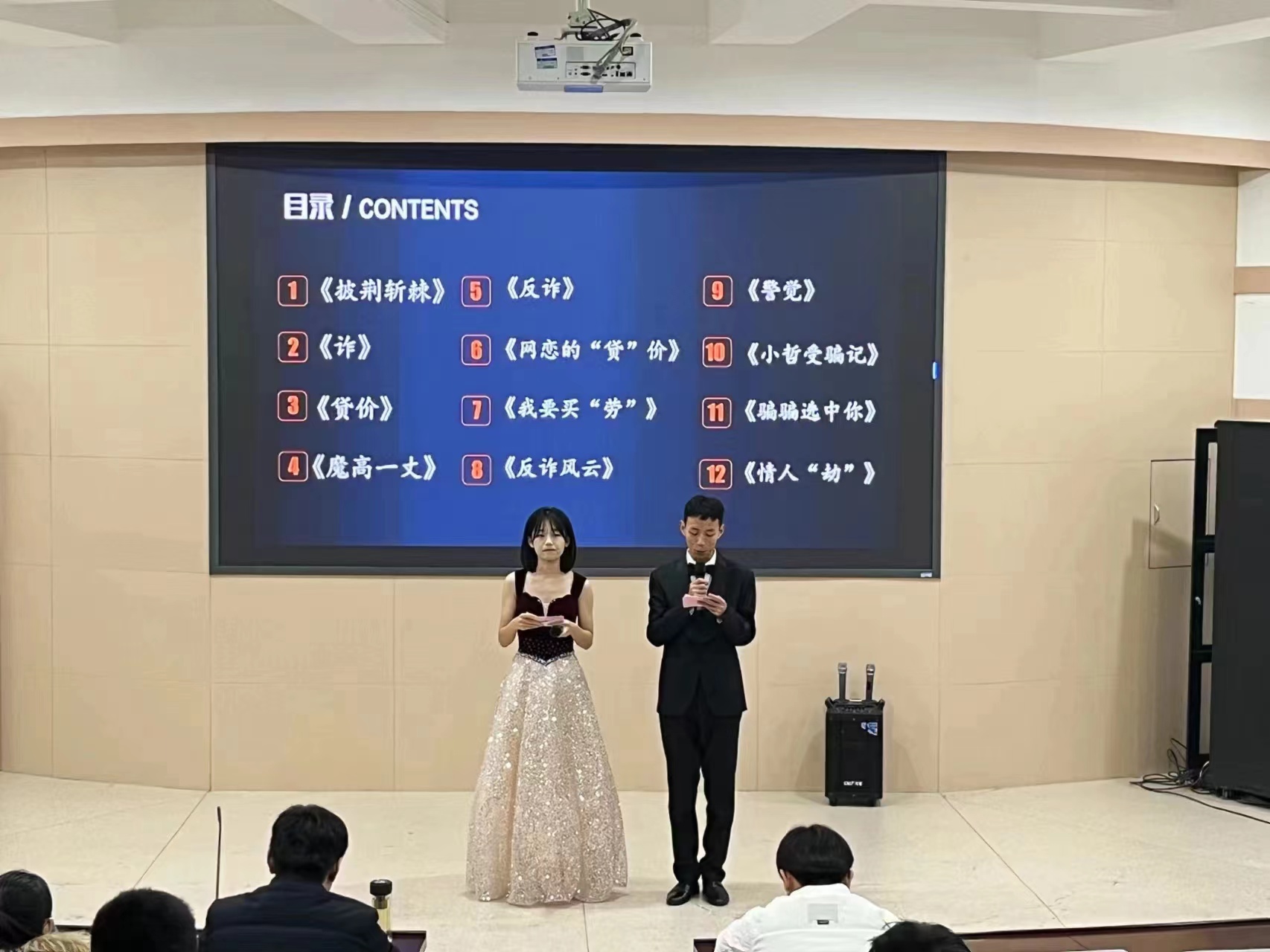 在主持人慷慨激昂的开场致辞声,本次大赛正式拉开帷幕。决赛现场,一部部精彩的反诈微电影作品逐一呈现,通过生动的故事情节和精湛的表演技巧,揭示了诈骗的种种手段,传递了防范诈骗的知识,增强了大家的防范意识。每一帧揭露诈骗真相的画面,每一幕警示公众的场景,都展现出参赛队伍的深入研究和精心制作。每部微电影时长虽短,但内容丰富、情感表达到位、教育意义深远,令现场观众印象深刻,展现出91社区