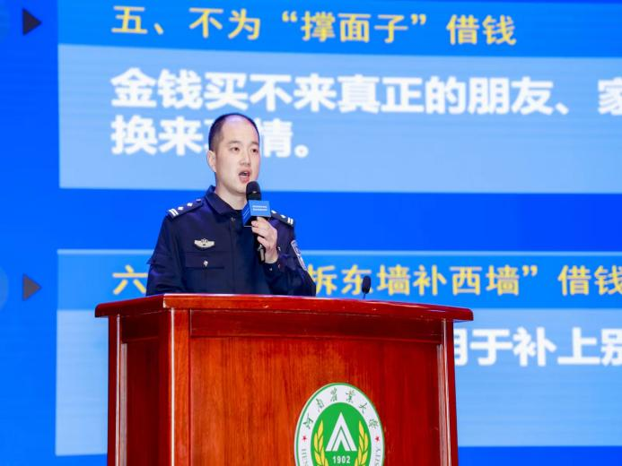 最后,郑州市金水区公安局反诈中心副主任李煜伟为大家带来反诈专题演讲。他分享了反诈安全的基础知识,引用真实案例,剖析了校园诈骗的惯用伎俩,让大家对诈骗手段有更清晰认识,并指出被骗后的正确做法。希望同学们提高风险防范意识,维护自身消费权益。