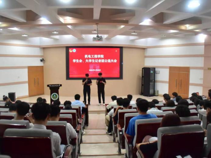 于文化路校区300人报告厅举行院学生会和大学生记者团(红色火炬工作室)公选大会。院团委书记黄笑,团委副书记王晓楠,年级辅导员孙改革出席本次会议,22、23级学生代表及学生组织成员参加会议。