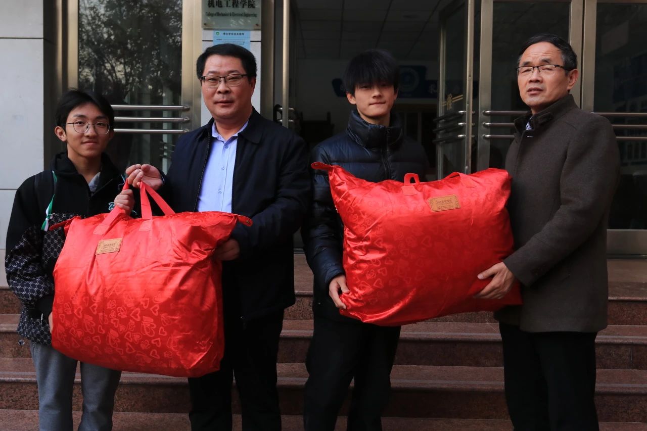 领导给学生代表送出棉被,亲手将这份温暖送到学生们的手中。这不仅是物质的馈赠,更是对学子们深切关爱的生动诠释,激励着他们在求学之路上无畏前行。