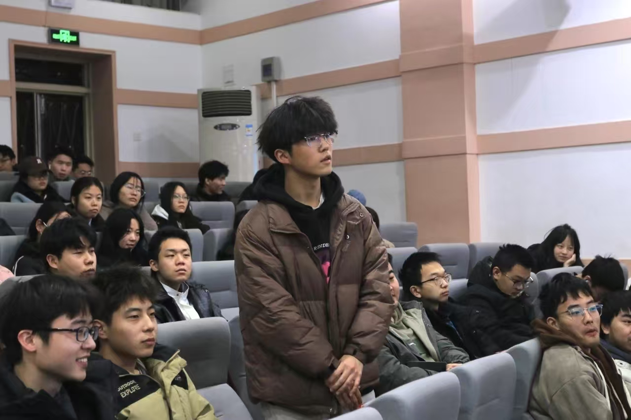 在最后的现场交流环节,学生们积极提问,就毕业论文撰写和考试备考等问题向周承博请教。周承博耐心解答,并与学生们进行了深入的互动交流。