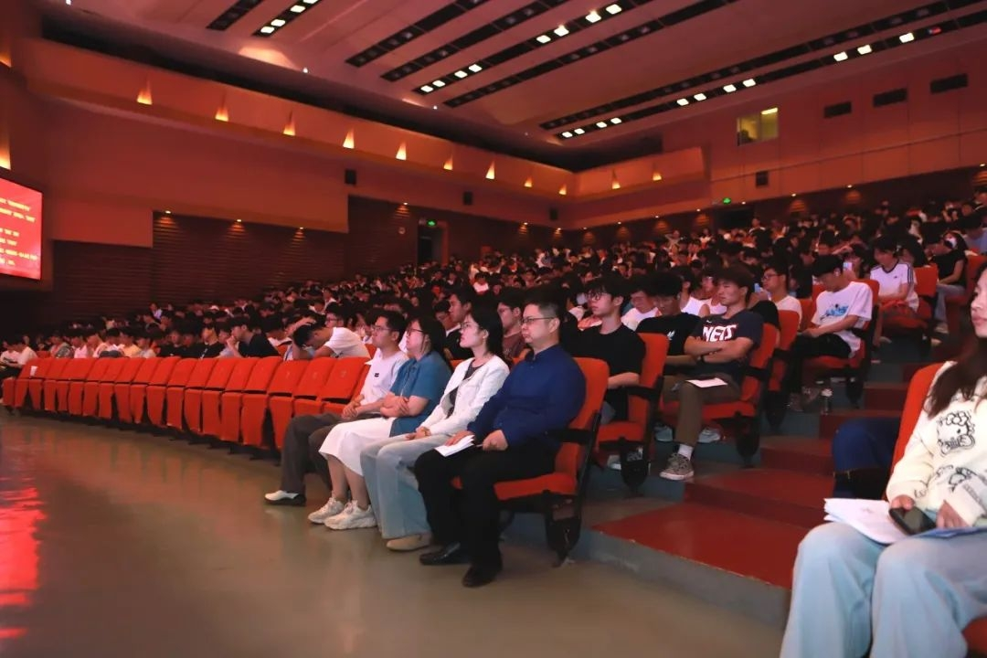 于文化路校区千人大礼堂召开安全暨反诈骗教育宣传会。本次会议特邀东风路派出所民警尹岩岩担任主讲,院党委副书记宋晶、院团委副书记胡亭亭、各年级辅导员及22、23、24级学生共同参与。