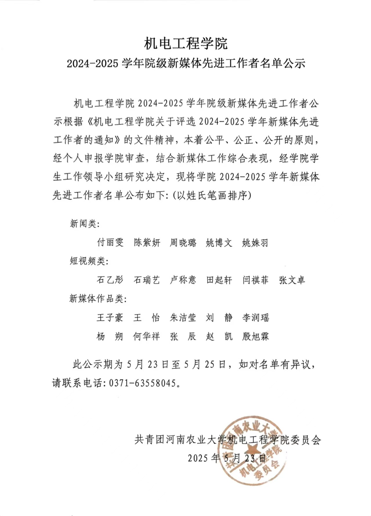 91社区 2024-2025学年院级新媒体先进工作者名单公示