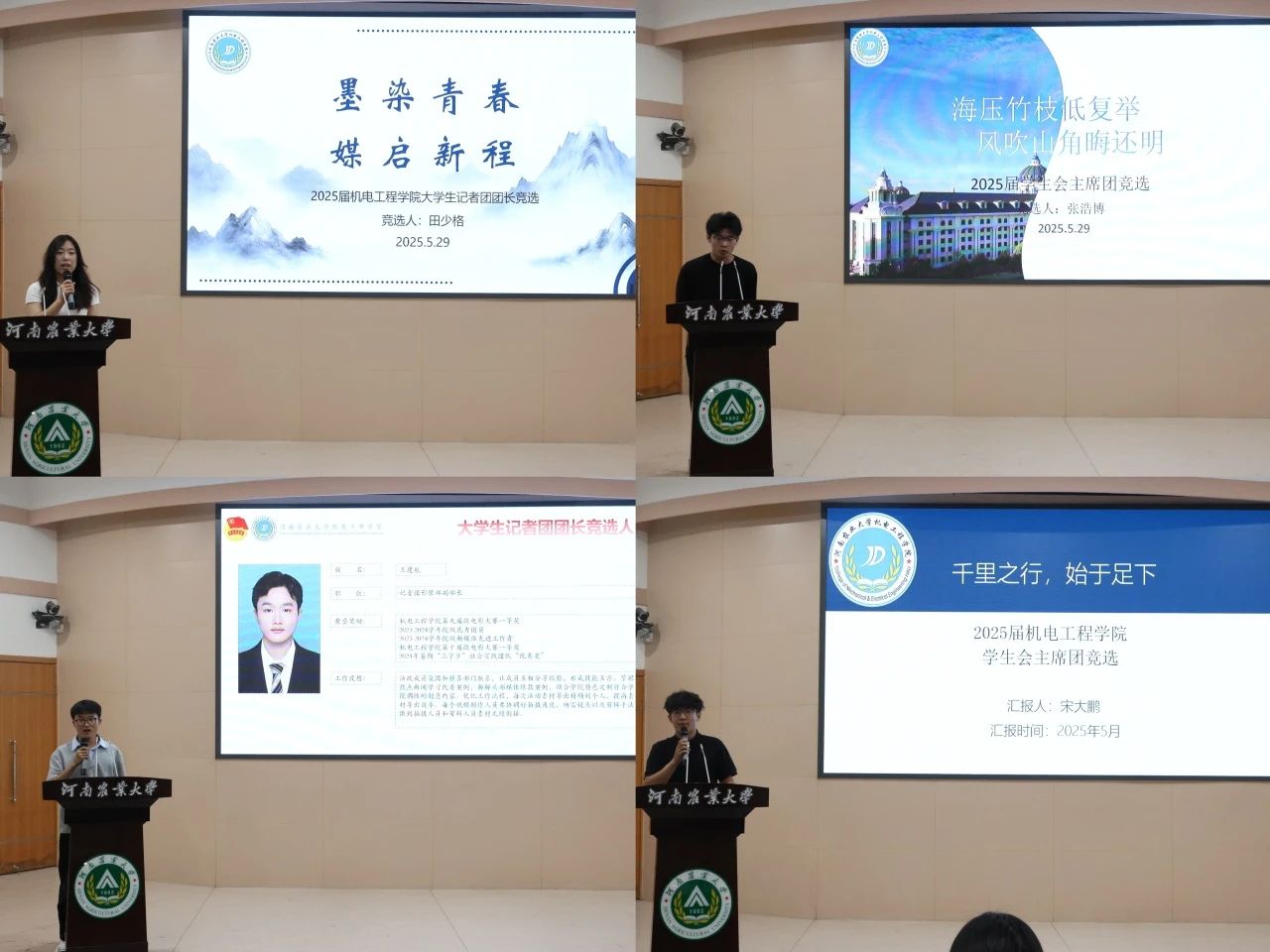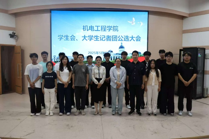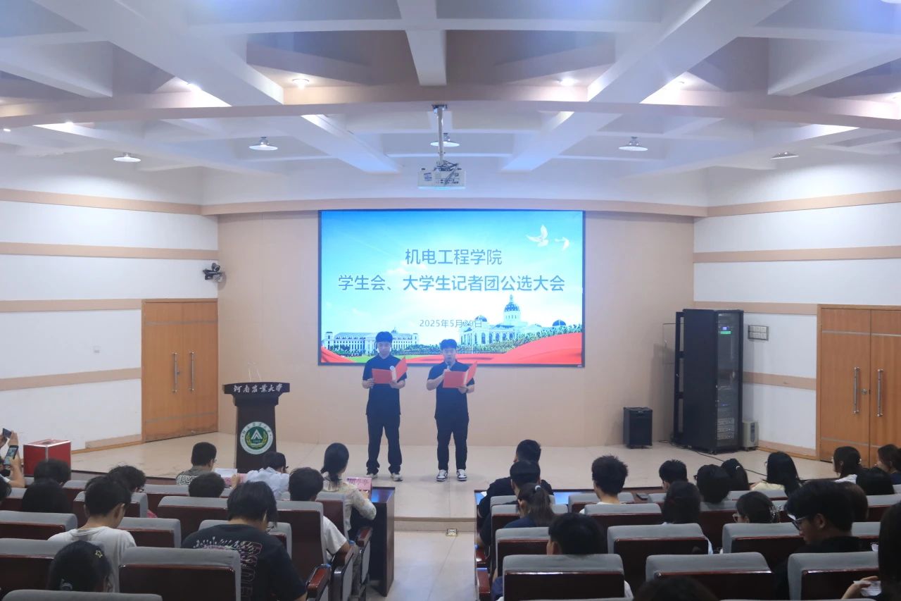 于文化路校区300人报告厅举行院学生会和大学生记者团公选大会。院团委副书记胡亭亭,年级辅导员孙改革、梁凯凯出席本次会议,23、24级学生代表及学生组织成员参加会议。