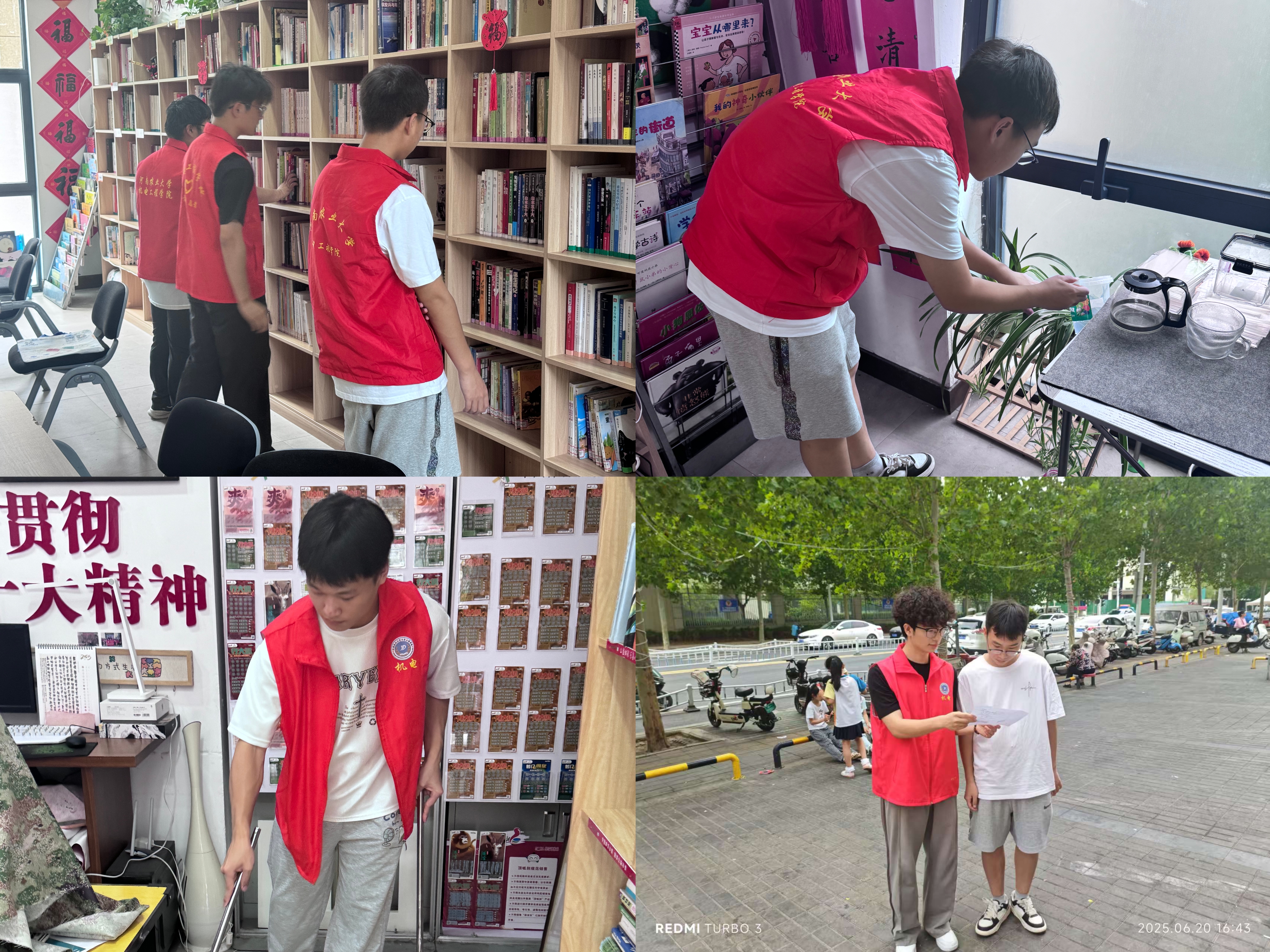 刘峥同学回顾实践,满是触动:“整理书架时,指尖摩挲旧书的纹理,像是与无数求知者的过往对话,那些书页里的折痕、笔记,藏着太多对知识的渴望。街头宣讲起初紧张到声音发颤,可看到路人停下脚步、露出认可的眼神,又慢慢从容起来。这次实践,让我想把这种温暖延续,多做实事 。”