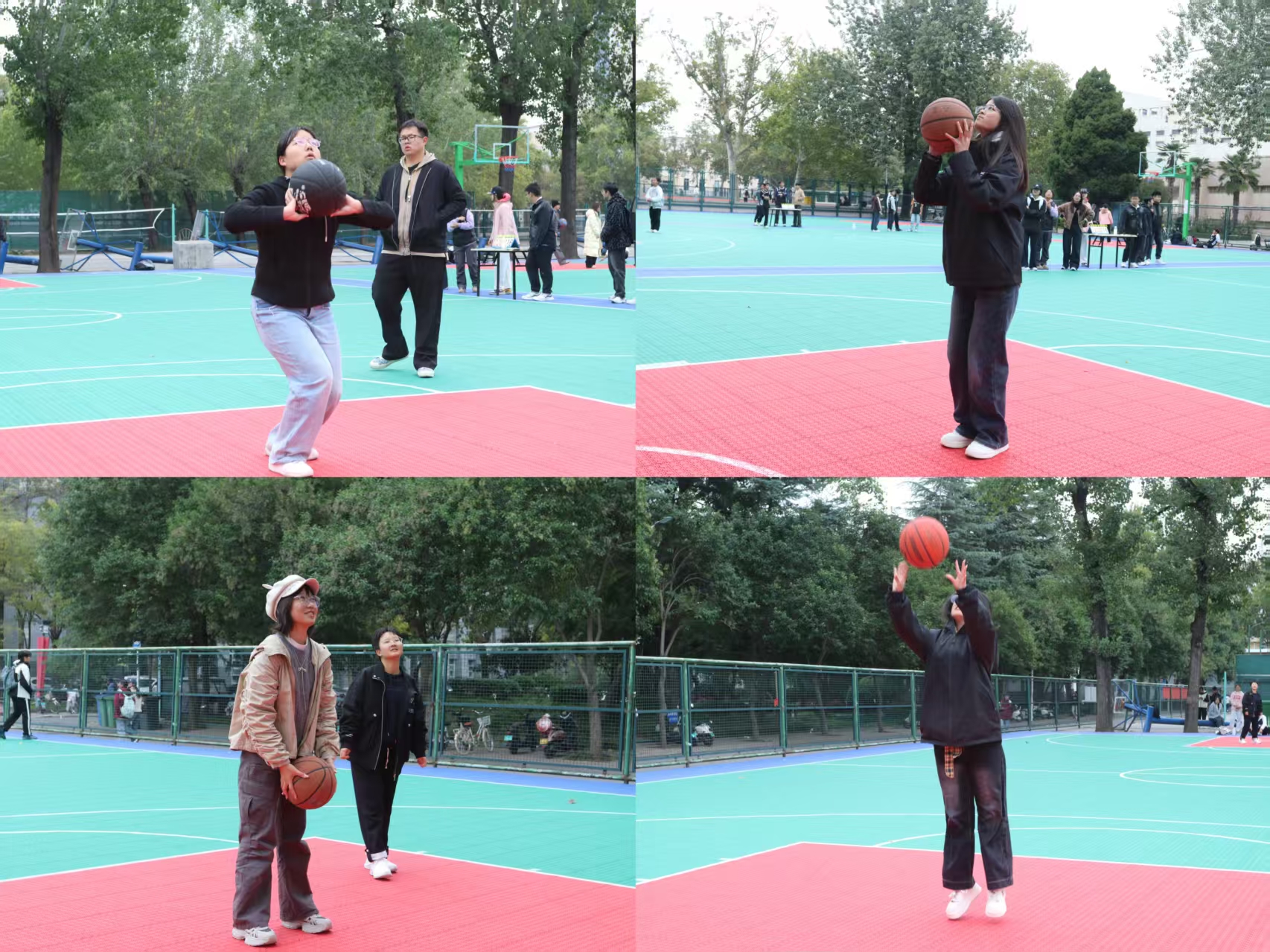 文化路校区操场激情上演。比赛期间,院党委副书记宋晶、院团委副书记胡亭亭、25级年级辅导员梁凯凯以及各班级助班悉数到场,为新生队员们加油鼓劲。本次篮球赛由院学生会体育部统一组织策划并进行裁判。